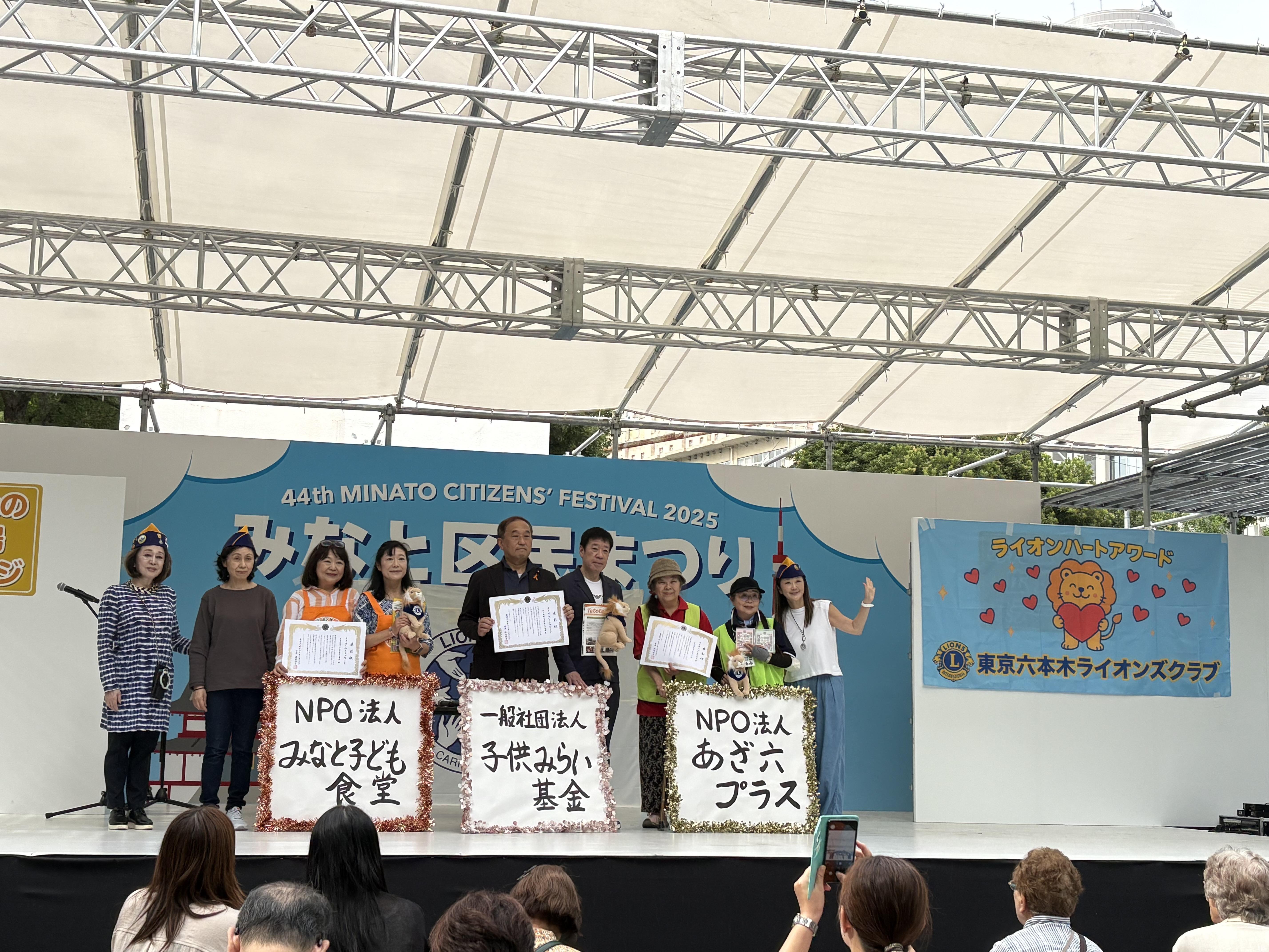この度、東京六本木ライオンズクラブは、ライオンハートアワードを創設し、独自の判断により港区でボランティア精神に基づき活動している団体を選定し、その活動を称え、表彰状と副賞贈呈致します。